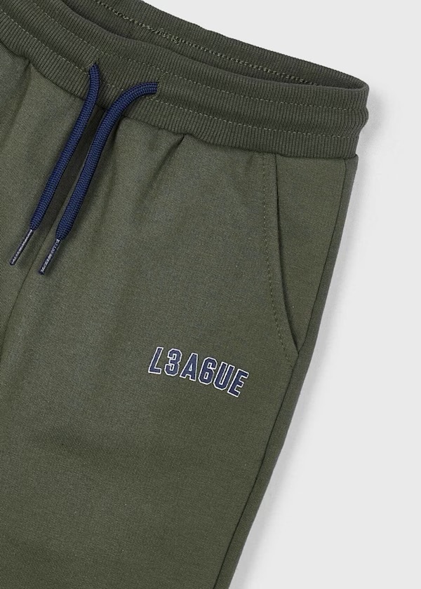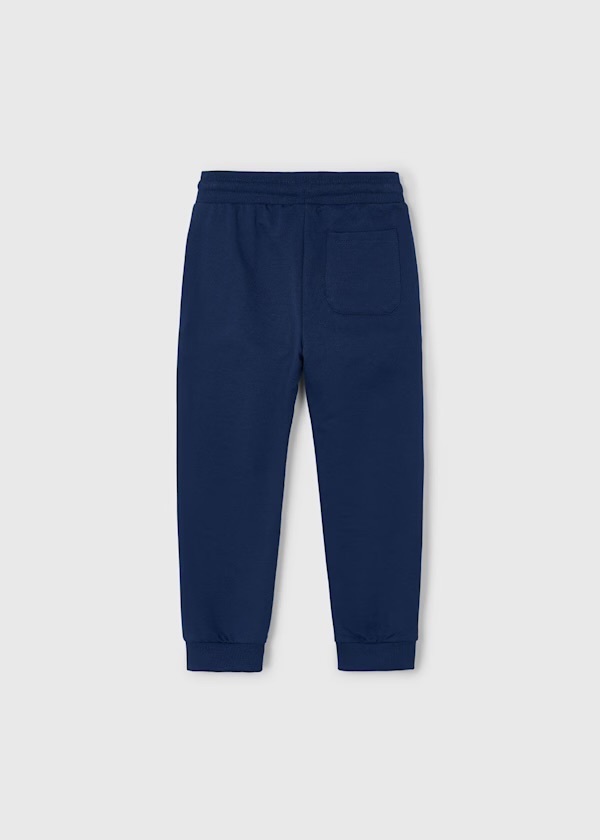 Спортивный костюм Mayoral состоит из куртки с капюшоном и спортивных брюк, выполнен в стиле casual. Куртка привлекает внимание крупным логотипом на груди и функциональными карманами, а брюки оснащены манжетами внизу и тонкой тесьмой для регулировки талии, обеспечивая удобство и свободу движений.