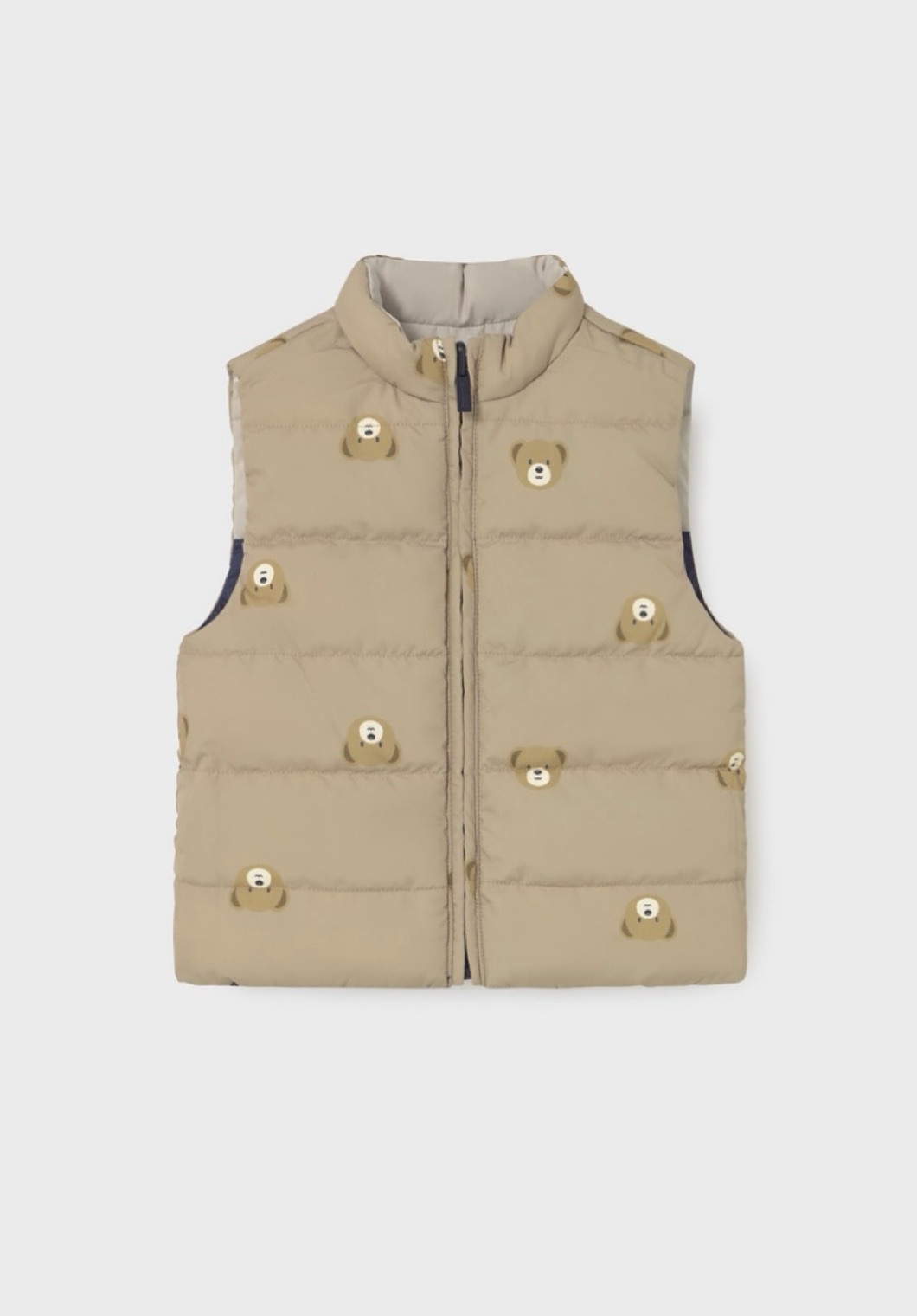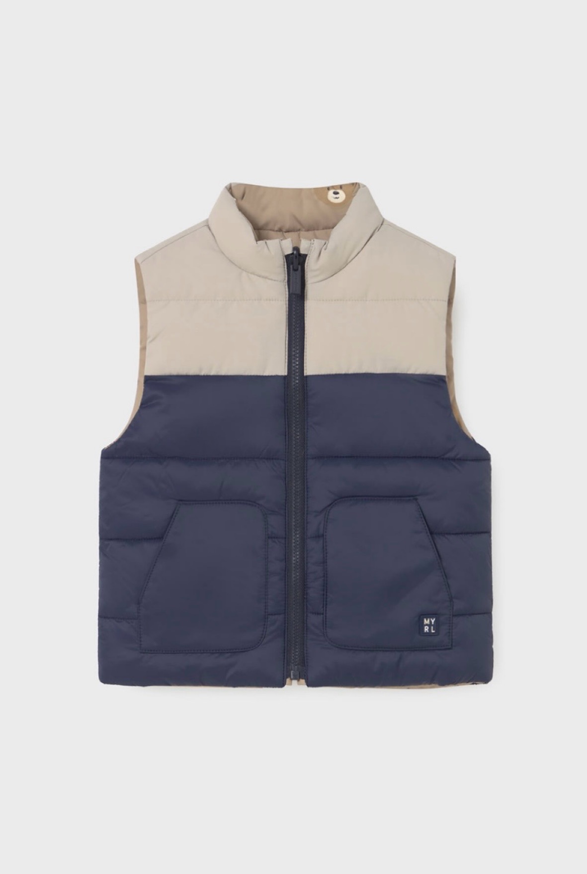 Утеплённый двусторонний жилет из коллекции Mayoral для мальчиков выполнен из стёганого текстиля с искусственным утеплителем, что делает его лёгким, тёплым и удобным в носке. Модель прямого кроя с застёжкой на молнию, воротником-стойкой и двумя карманами спереди обеспечивает комфорт и практичность для повседневного использования.